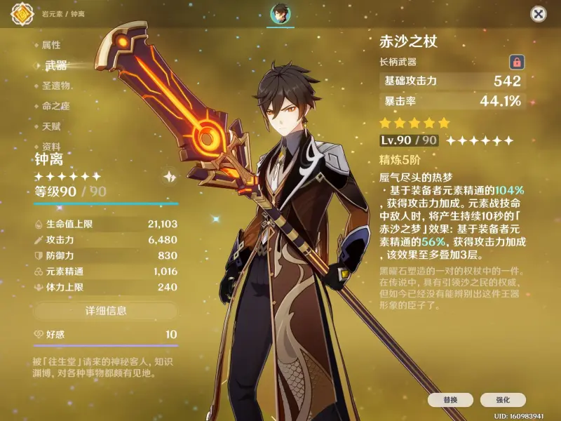 这期是赤沙之杖应用于钟离全流派的实战表现,目前从结果上来看给物钟上赤王科技算是科研成功了。 先说结论,赤沙钟离应用于各流派的收益从大到小排名是:火武>物理>水武>共鸣>天星>冰武 其中火武和物理有很大提升(最优配队精通拐多),水武和共鸣有较小提升(最优配队精通拐少),天星和冰武则是负提升(最优配队无精通拐),如果能吃到精通拐那就会是正提升。