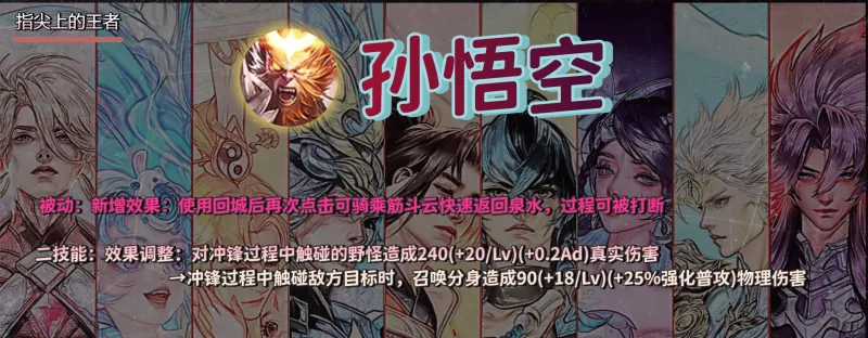 昨日更新我就跟大家说过,这个调整虽然是纯加强,但前期不要抱有太高的期望,除非后续能开发出筋斗云的真正玩法,尤其二技能的调整,对很多人来说也不算纯加强,虽然打英雄也生效,但似乎不如斩杀野怪的刷野效率高。 也有很多人反馈,调整之后二技能的手感变得莫名,似乎没有之前那么流畅,不知道是不是bug,但暂时通过一些玩家的反馈,这个版本的大圣似乎还难以崛起。