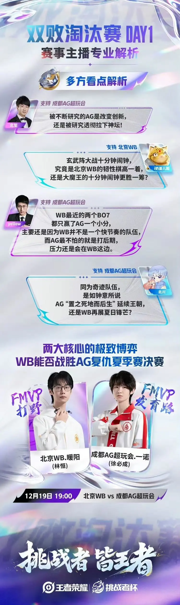- [前瞻]两代青训野王正面对决,WB再遇苦主AG超玩会,[前瞻]两代青训野王正面对决,WB再遇苦主AG超玩会