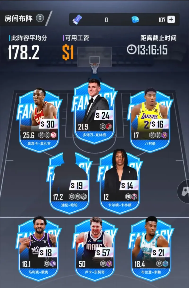 球员选择理由大同小异,很多都多个游戏都可以选的人。不过美职篮英雄里面的米勒、八村塁和卡灵顿的身价都过于便宜,在8人阵里都用来填线。 另外,国王的蒙克可以吃拉文不打的红利,这个人有一定的爆发力,尝试一手,8人阵里多出来的预算投资了077,一分钱一分货的选择。 冠军组合阵容