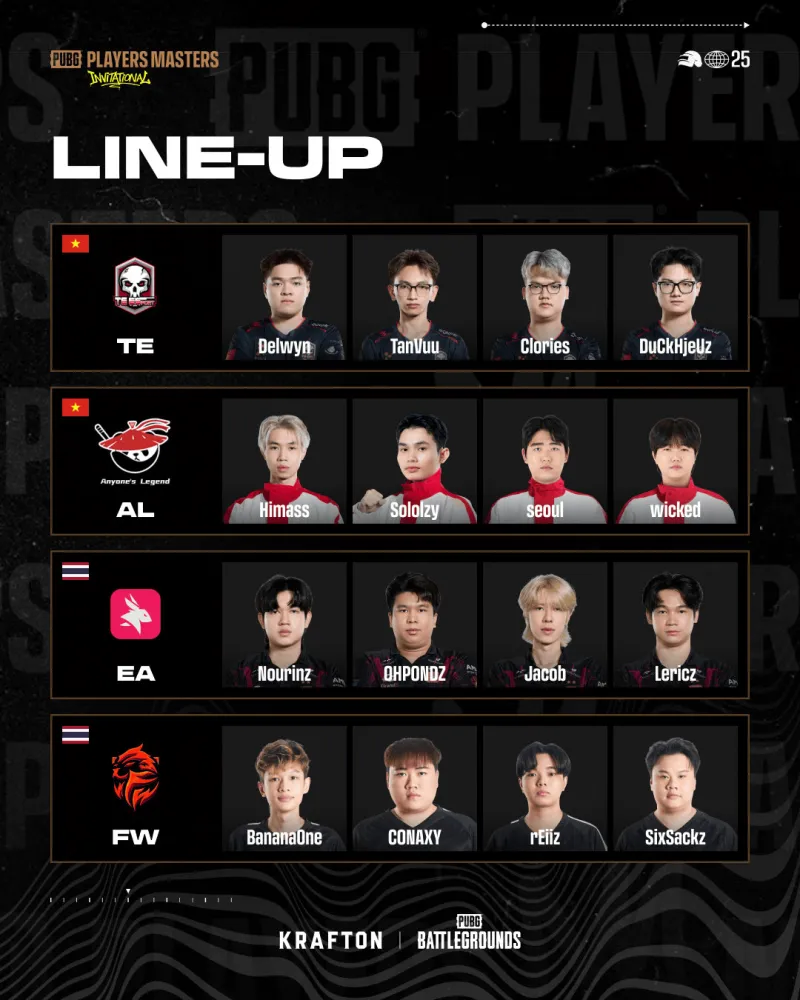 虎扑12月16日讯 PCL赛事发布PPMI大师邀请赛参赛队伍及选手,具体内容如下: 我们很高兴在此公布PPMI大师邀请赛的完整参赛队伍及选手名单。 今年的邀请赛汇聚了来自美洲、EMEA、亚太、中国及韩国赛区的16支顶尖战队。所有队伍将齐聚首尔,展开为期三天的第三人称视角(TPP)模式对抗。 此外,本次赛事还将创造PUBG电竞历史——全部64名参赛选手都将提供个人第一视角(POV)直播,让粉丝能够以全新方式追踪每一位选手的比赛实况。 点击下方阵容列表中选手的名字,即可进入其个人直播流(直播链接将随最终确认持续更新)。 请注意,由于区域名额、特别邀请或本次赛事特有的队伍安排,部分选手可能不以原所属战队名义出战。 以下是即将登上首尔舞台的完整战队及选手阵容。